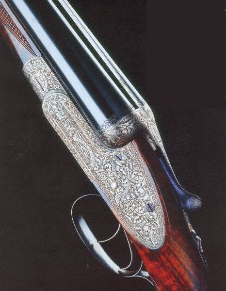 If this pin is not visible there are two possibilities: either you are in possession of a gun with 'pinless' lockplates and this can be confirmed by looking for the other pins on the main body of the lock plate. If they are present then you most likely have a Back action gun masquerading as a Bar action gun. Blanch produced quite a number of these, often with Baker patent self opening actions, and they are usually engraved with good quality bouquet & scroll.