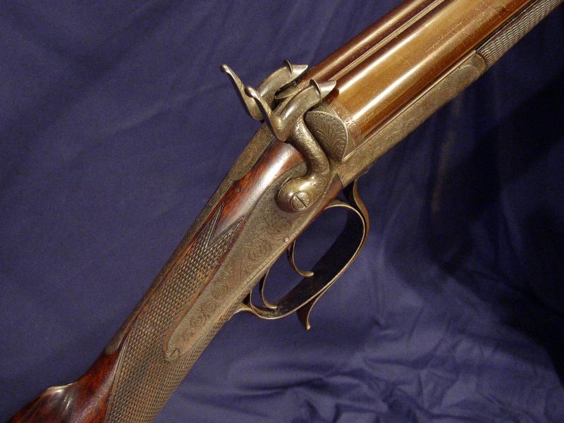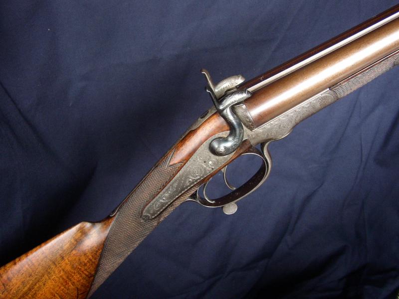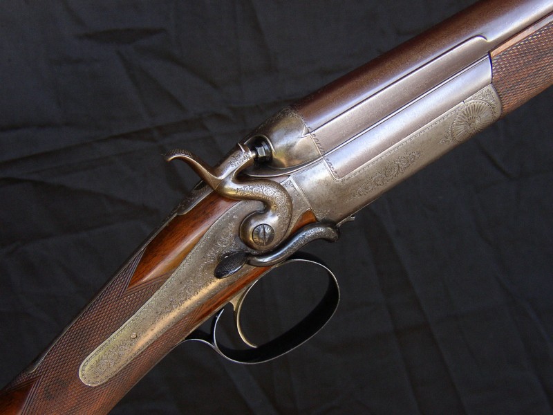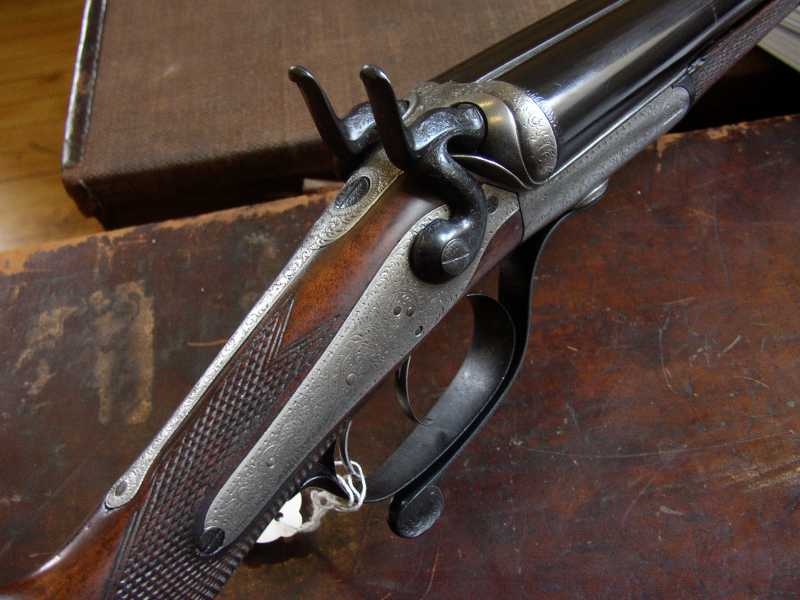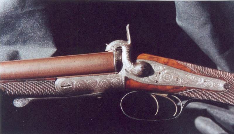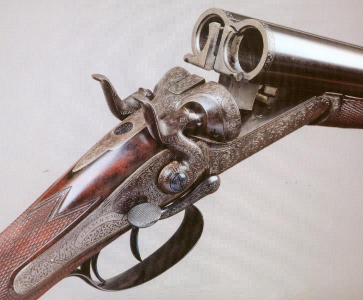 Back Action. Side Lever. Ejector, Perkes Patent 12176/87. Carved Percussion