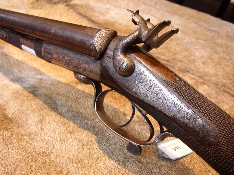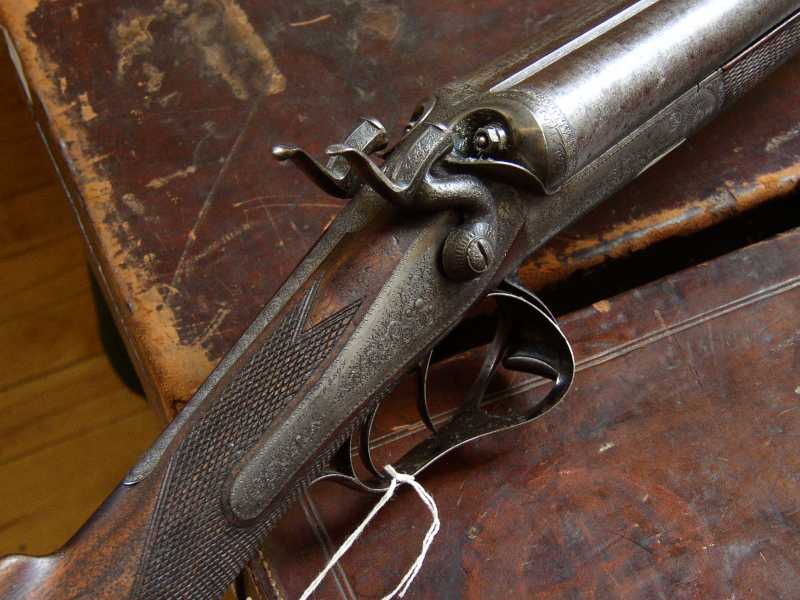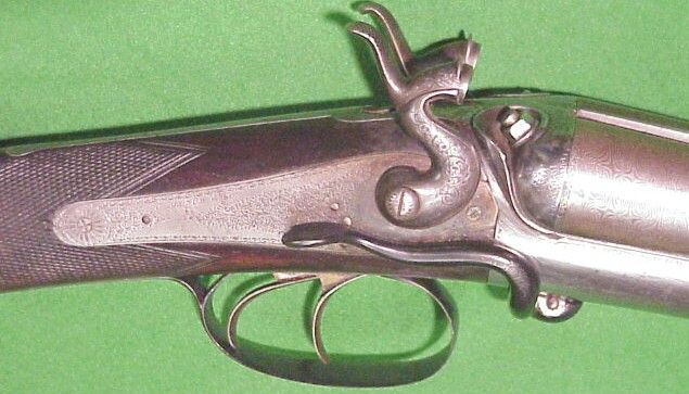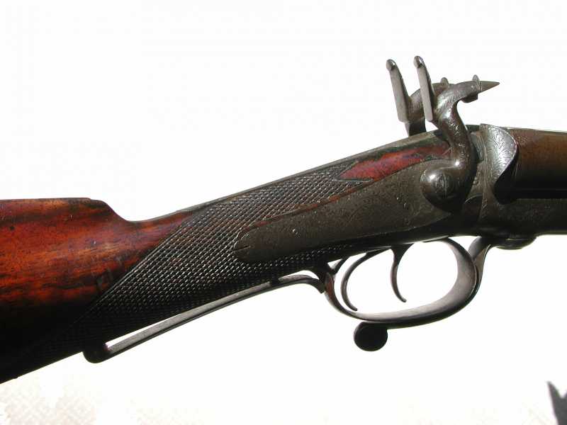 Back Action. Side Lever Single Barrel. Carved Percussion Fences. Low Hare's