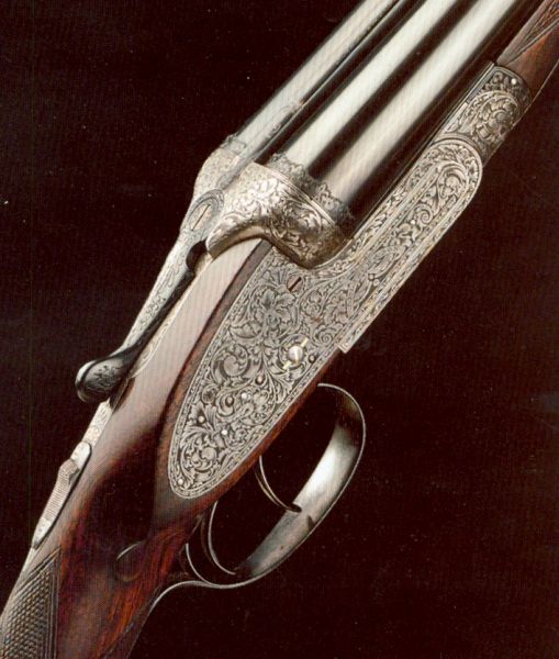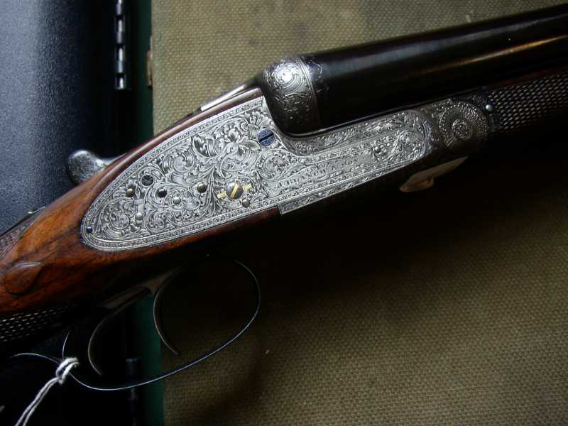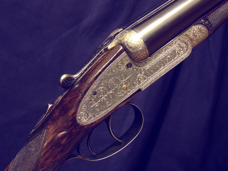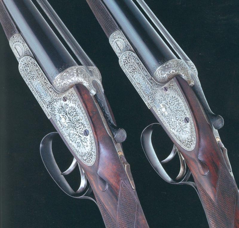 | Unless otherwise specified, all the guns in this section are double barrel, bar action side lock ejectors with Webley fences, automatic low beatleback safety slide, top lever actions, double triggers, nitro proof chopper lump steel barrels, game rib, 2 1/2" chambers, 29 Gracechurch Street address. Where known, ejectors are mainly Southgate pattern, forend catch is on Anson pattern and the actions have interceptor sears. Almost invariably, engraving is of high quality and 100% coverage. | |||||||