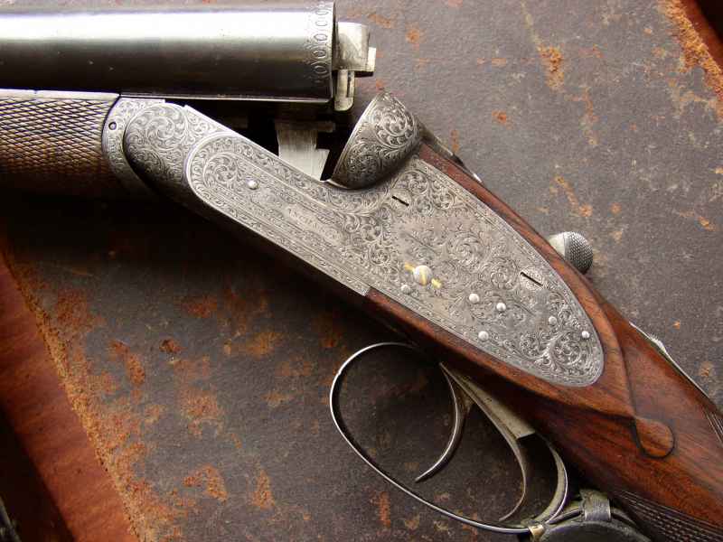 | 6885 | Photo | 12b Bar Action. 28" chopperlump barrels, 2 3/4" chambers, 1/4 & 1/2 chokes. Rolled trigger guard. | UK | Foliate scroll & game | Figured SH 14 1/4" stock. | 6lb 12oz | Attractive gun. |