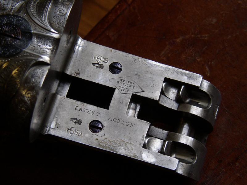 under the patent no. 706 of 1879. Interceptor sears in Blanch boxlocks are also quite common and all the examples I have seen follow the usual boxlock pattern of an 'L' shaped sear, pivoted on a transverse pin located just behind the fence. Pulling the trigger lifts this sear out of engagement with the tumbler as the main sear is pulled out of its bent. If the tumbler accidentally falls without the trigger being pulled the hook catches it. The design of this mechanism seems to derive from William Anson's patent no. 4089 of 1882 which describes a double rocking lever operated by the safety catch which blocks sears and triggers. However, it also includes the interceptor sears as described above which gives a real 'belt & braces' approach! The use of the double rocking levers to lock the trigger blades, the standard Westley Richards safety, is very common in Blanch boxlocks, the use of the interceptor sears as well considerably less so. Patents As with the back action lock work, Blanch retailed many guns that used other current patents, especially those by Scott. Whether this was because they particularly liked the patents or simply because Scott was their supplier of choice remains a mute point. However, the fact remains that you are likely to encounter many patent acknowledgment on their guns and none that I am aware of refer to a Blanch patent. Those most commonly encountered are as follows: W